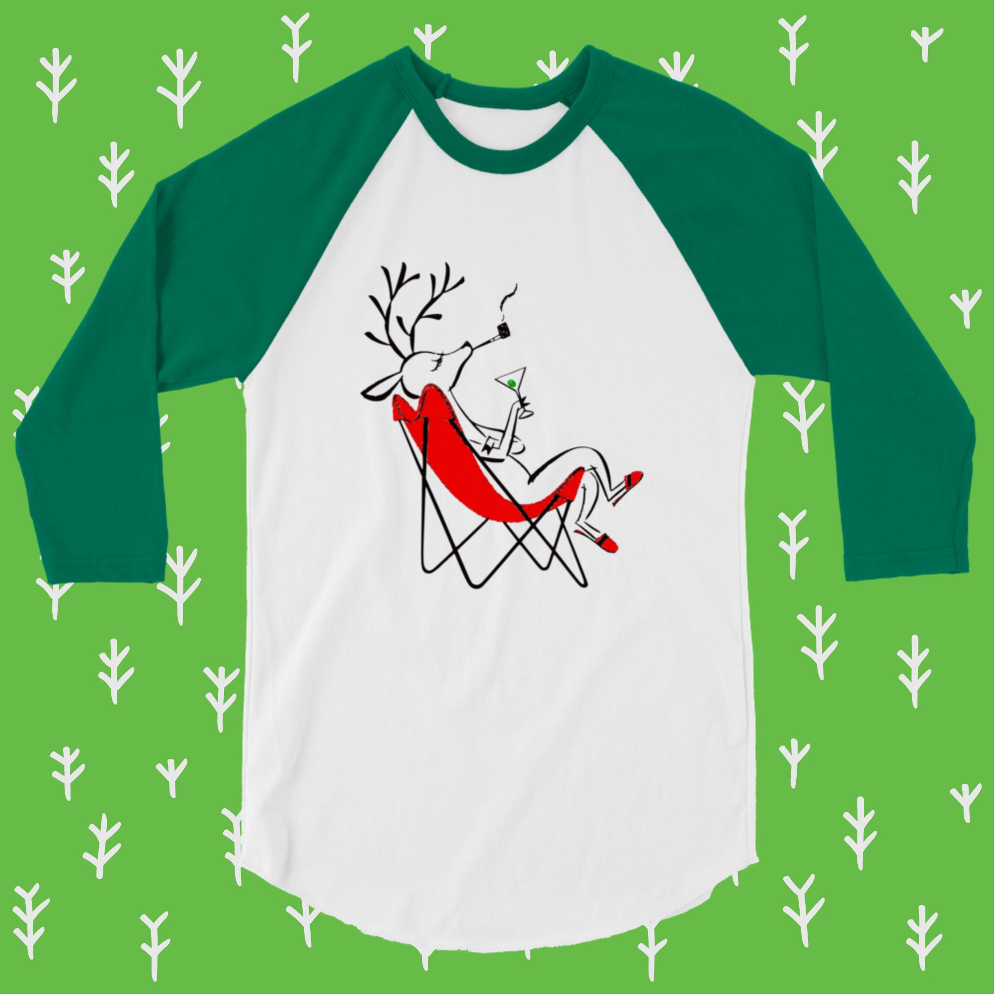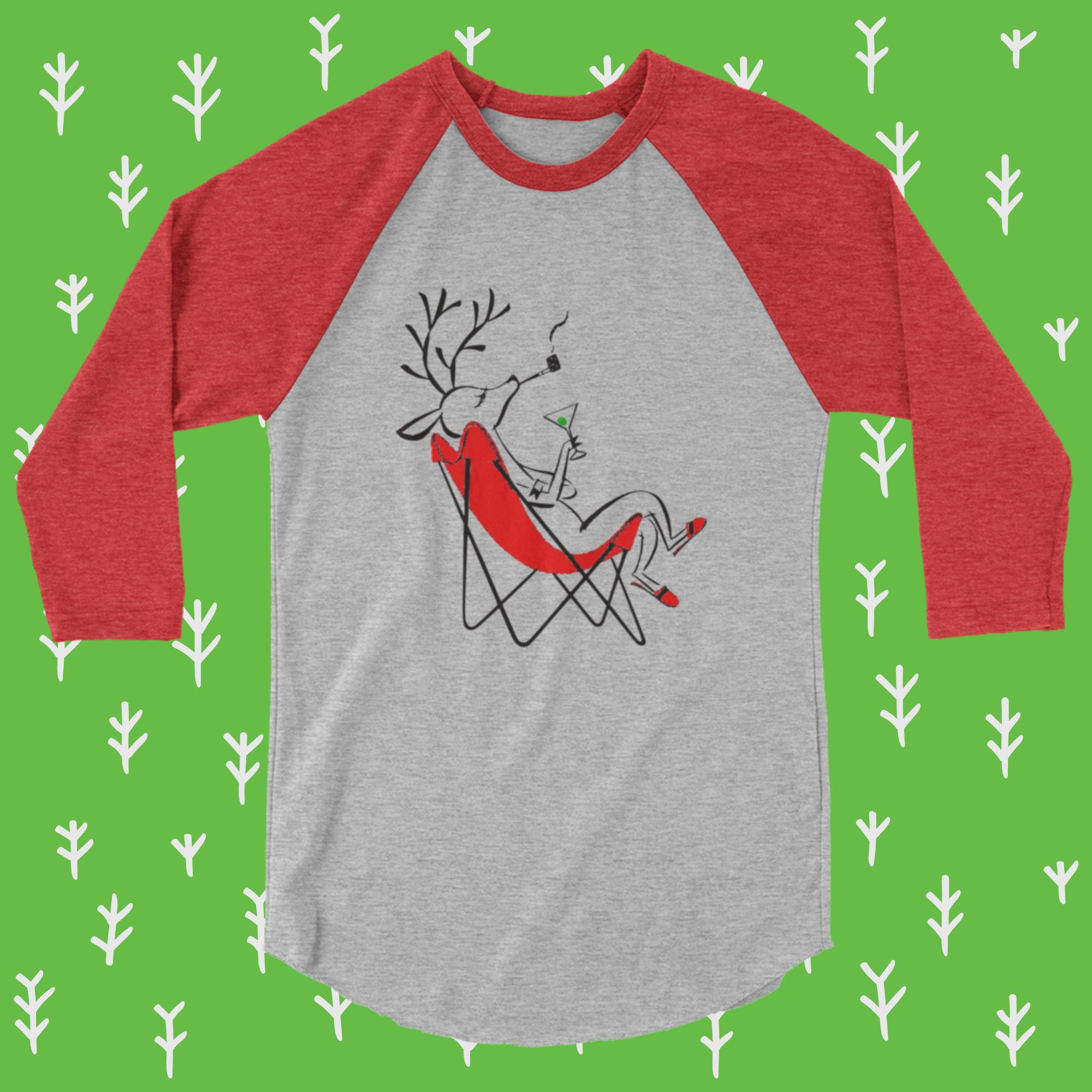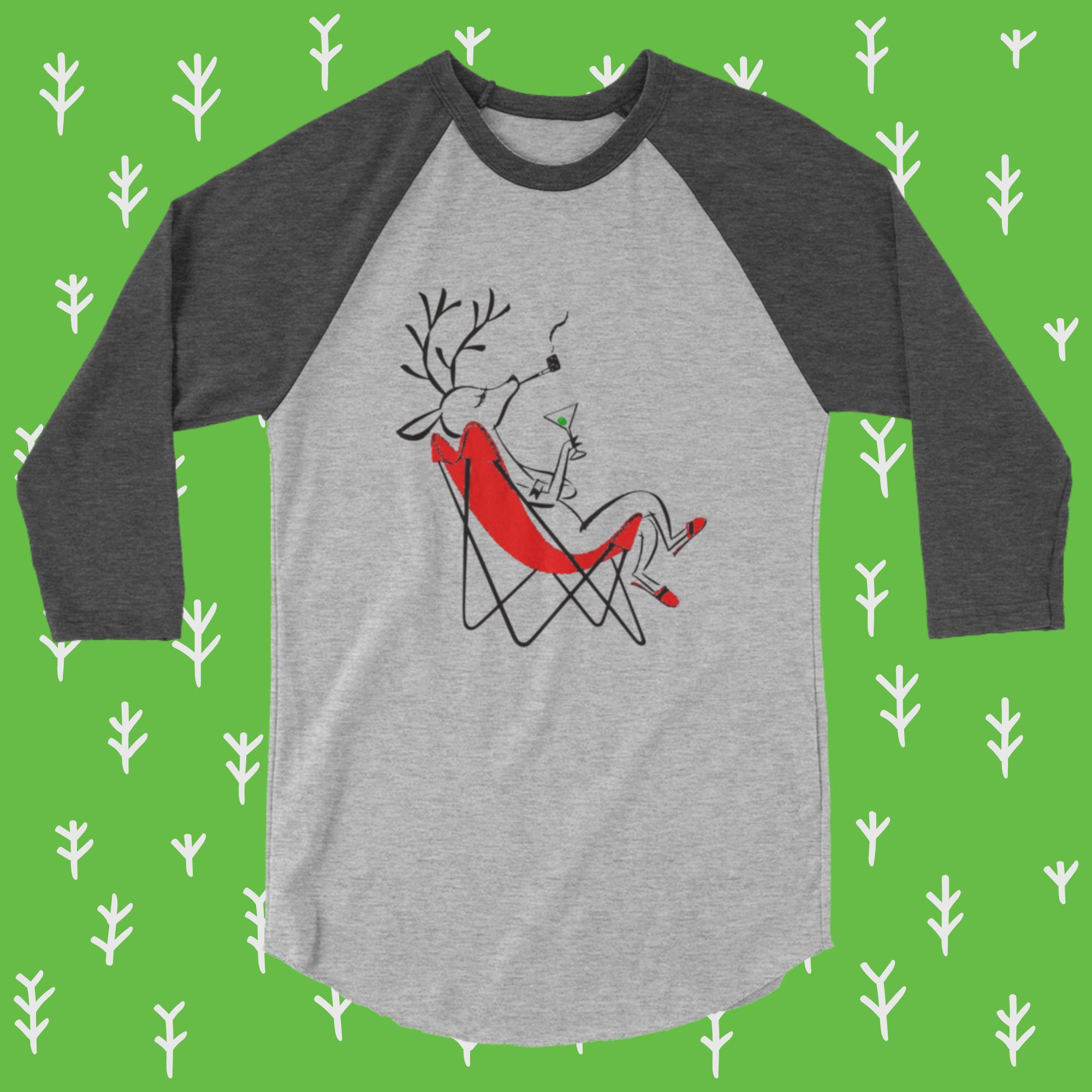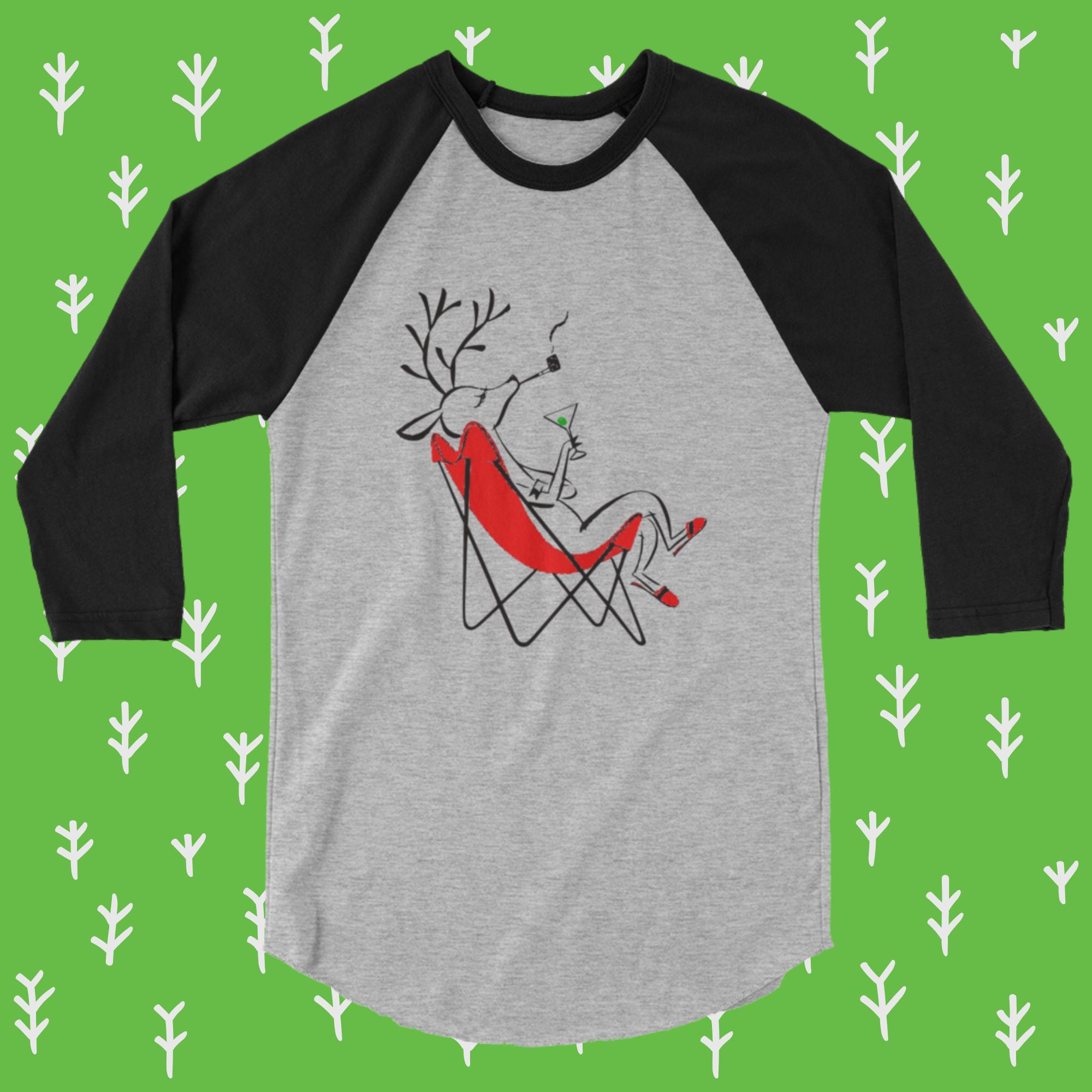 Smoking Reindeer – 3/4 Sleeve Raglan Shirt