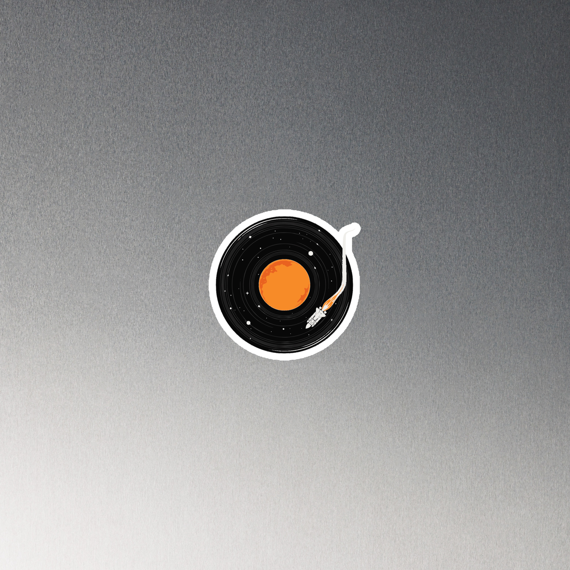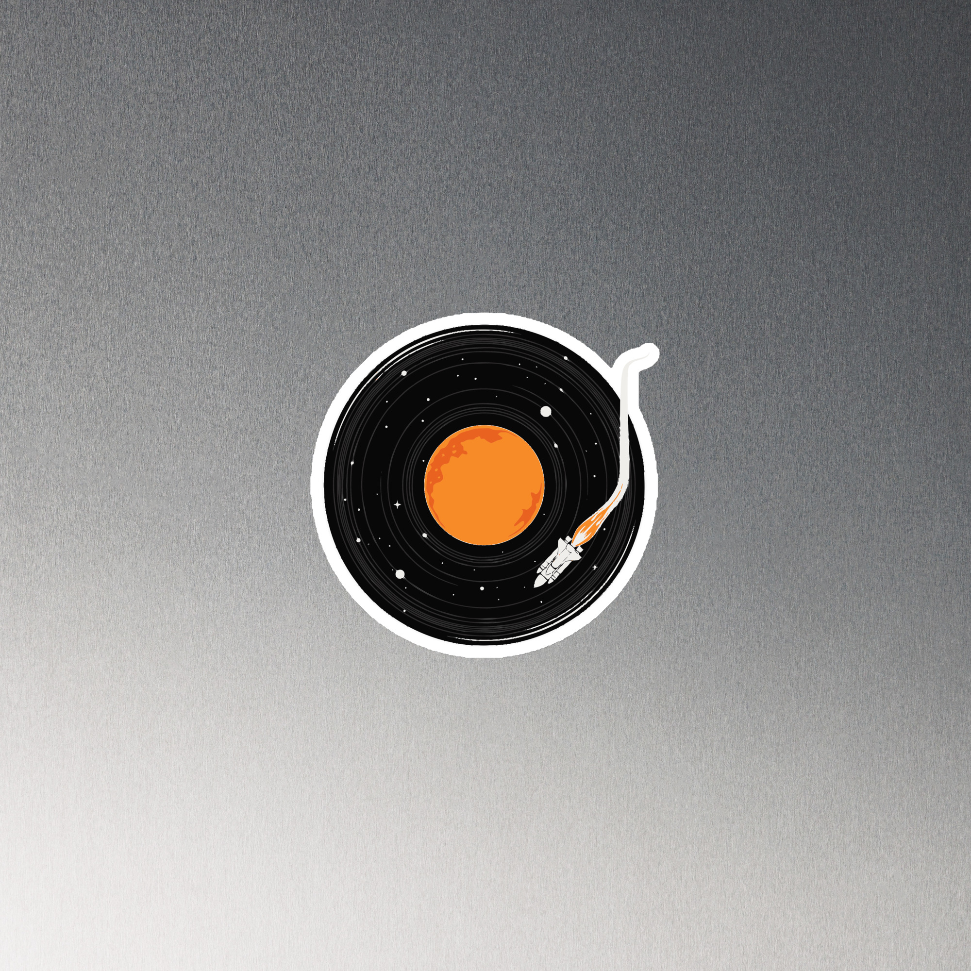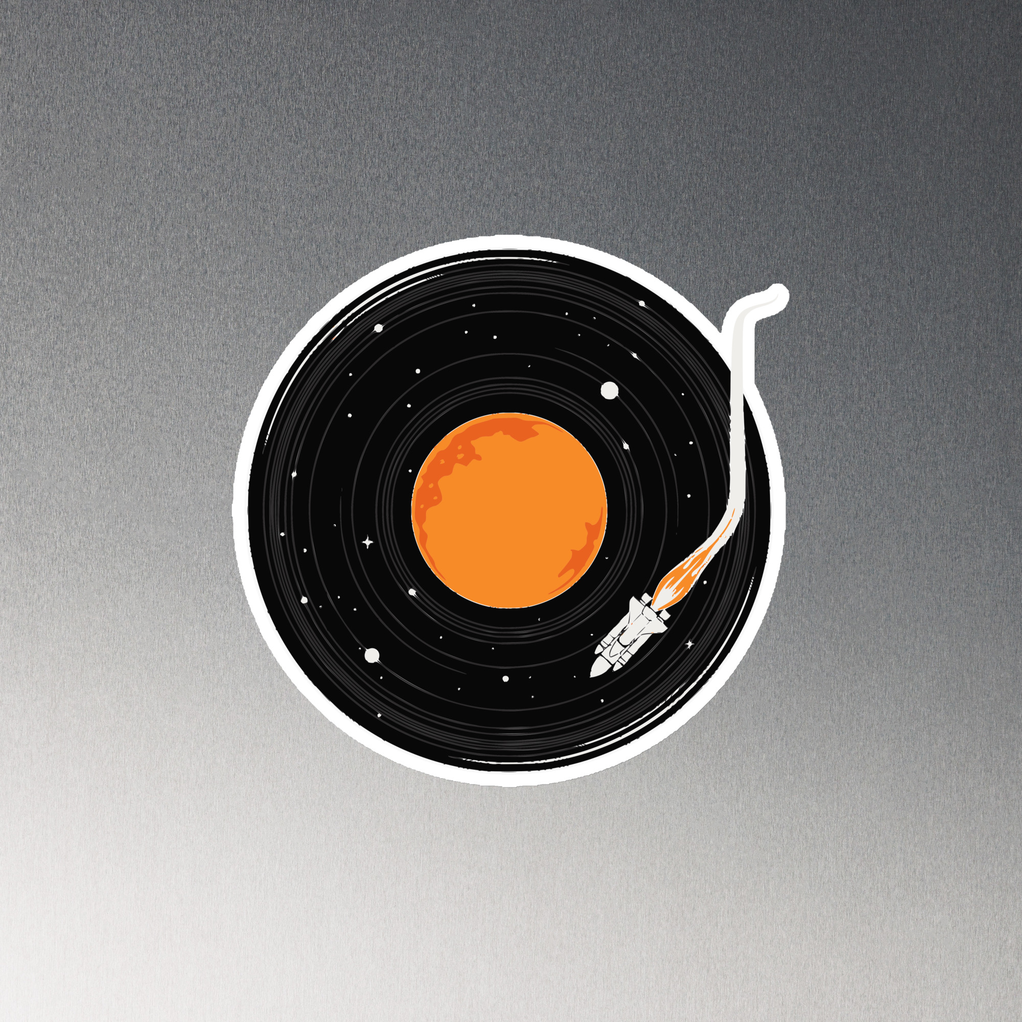 Showcase adventures and inspiration, or simply keep your space organized with our premium magnets. This one features the space shuttle flying through space getting ready to play a galactic song.